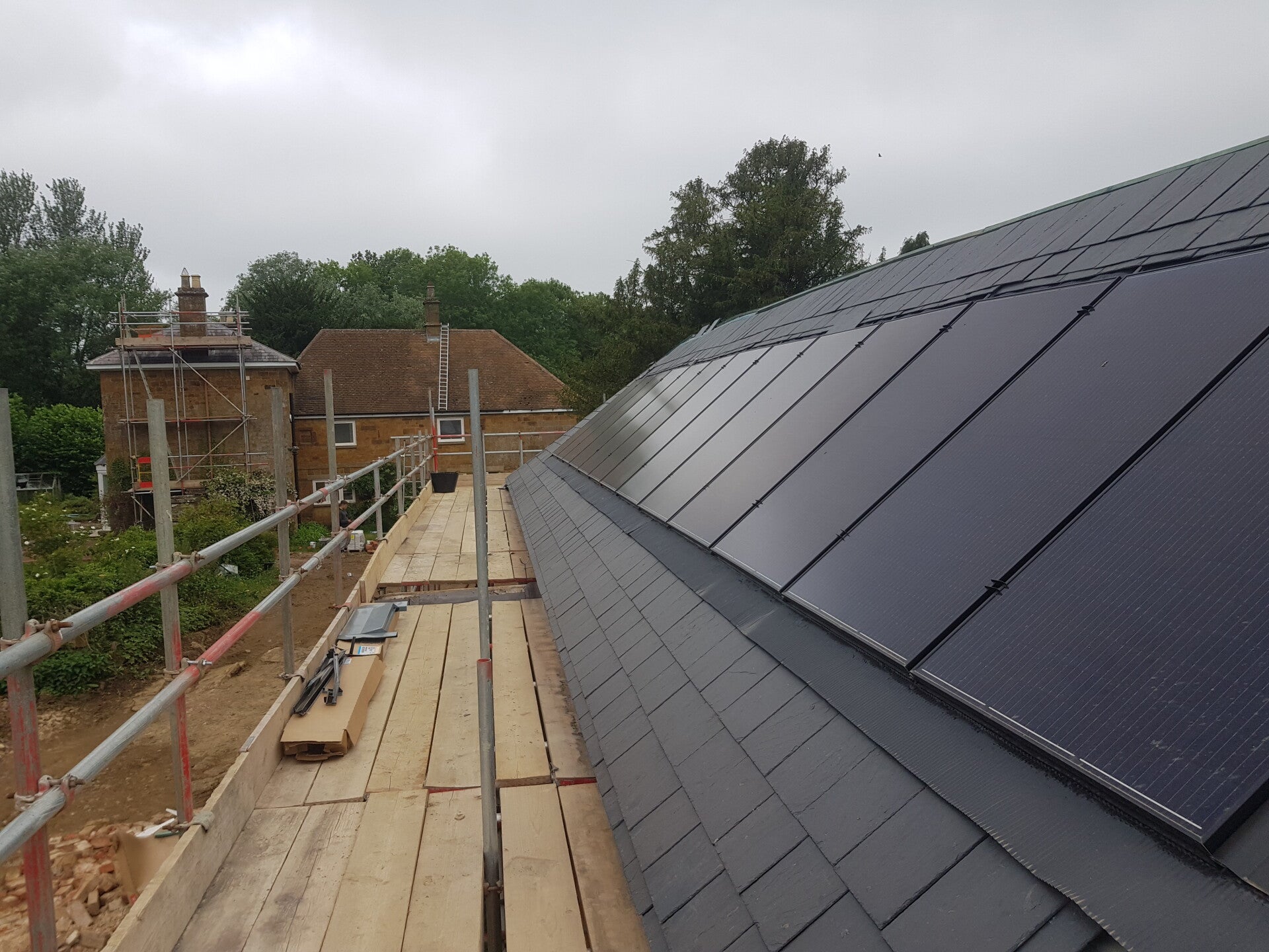 Natural stone sourced from a local quarry was expertly installed by skilled stonemasons, ensuring the new construction blended seamlessly with the surrounding historic architecture. The homes were also equipped with solar panels and air-source heat pumps, providing energy-efficient heating solutions.