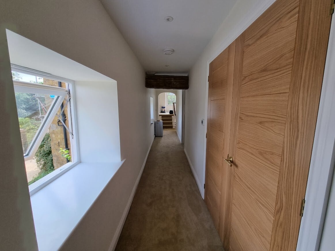 Due to the age and structure of the property, one of the floors above the basement had to be completely reconstructed to support the weight of the natural stone flooring and feature fireplace. Throughout the renovation, great care was taken to restore and retain the original architectural features, including the full restoration of the original sash windows. Although a lengthy process, it ensured the farmhouse retained its historic charm and authenticity.